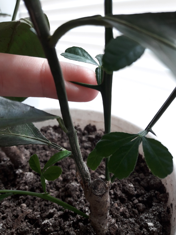 Помогите опознатьКупили мы саженцы комнатных цитрусовых.Лимон сорт "Майер"+"Павловский" и мандарин"Ковано-Васс".и не знаем где лимон где мандарин.и какой то из саженцев стал активно рости и выпускает трехлистные листья.....это что?!мы смотрим на него как то подозрительно и не поймем что это....и колючки у него длиные и острые.фото ниже