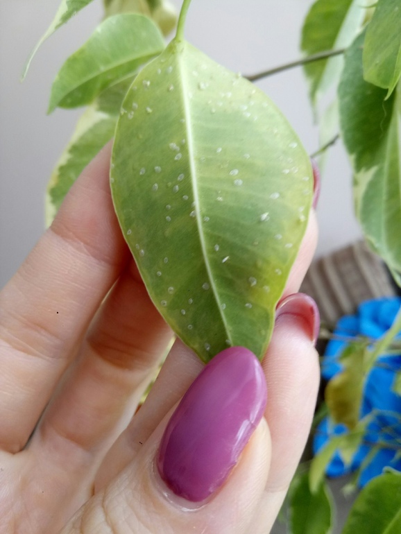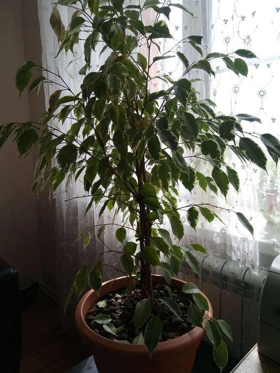 SOS! Помогите цветику!Доброго всем дня! Я совсем не цветовод, не знаю, что делать... В общем, купили как то зимой фикус Бенджамина, пересаживать сразу побоялась..так он и стоял до лета в том состоянии, в каком и купили. Но в июле переставили его в другое место , и он стал терять листья. Вернули на прежнее место и пересадили в горшок побольше. Через 3 дня заметила, что верхушка у растения пожелтела и повяла ( полила только при пересадке), а сегодня на листочках с тыльной стороны заметила много- много белых жучков , я поняла-это тля. Листочки липкие. Прочла на просторах интернета, что надо обработать цветок мыльной водой. Я опрыскала. Помогите, пожалуйста! Как спасти и чем???