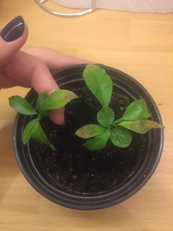 Этим малышам чуть меньше года, проросли из косточек в феврале этого года. Долго было по два листочка на каждом, потом посреди лета как то активно стали расти другие листочки. И вот несколько недель как листья стали желтеть и сохнут ((