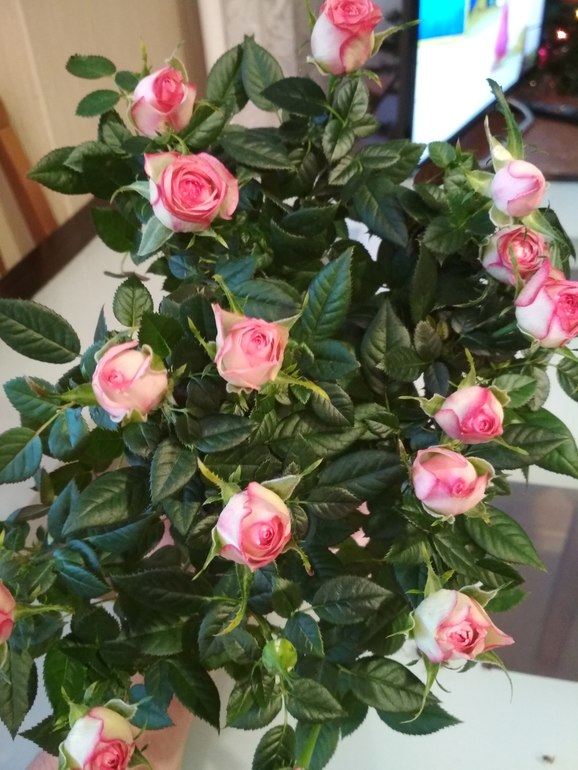Добрый вечер! Эти розы не очень любят сухой воздух квартир, зато прекрасно растут и зимуют в открытом грунте. И если есть такая возможность, лучше сейчас постараться уберечь её от паутинного клеща: обработать, часто опрыскивать и поставить рядом банки с водой для влажности, а весной высадить в открытый грунт. А пока наслаждайтесь цветением!
