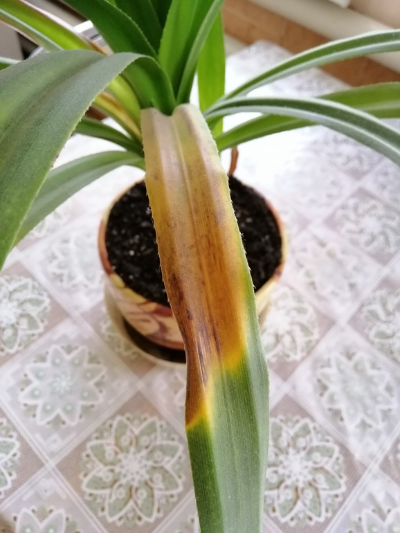 Попробуйте землю "всковырнуть" у корней аккуратно..возможно дрянь завелась, типо мучнистого червца, белая гадость оставляет белый налет на корнях и в земле. Например, на фиалке, если завелось, то начинают вянуть и гнить нижние листья, ну и налет этот в земле видно явно.