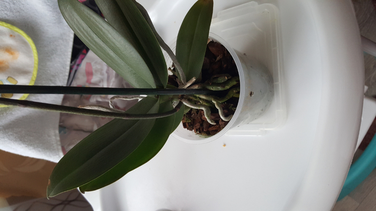 ОрхидеиВсем доброго дня!!! 3 недели назад подарили мне мою первую орхидейку. Заметила, что на стенках горшка были уже зеленые водоросли. Полила через 10 дней методом погружения на 15 минут в воду. Потом дождалась когда лишняя вода стечет, убрала воду. Через несколько дней пожелтел лист, я по глупости (насмотревшись видео в интернете) его убрала. Еще через несколько дней заметила черные пятна на шейке и кончики листиков начали сохнуть. Ничего не делала. Вчера заметила в грунте плесень. Поливала так же погружением 2 дня назад на 10 минут. Залить вряд ли смогла, скорее всего процесс уже начался в магазине. Цветонос сразу стал скидывать цветы и сейчас ничего не осталось. Думаю пересадить и обработать. Не знаю как правильно поступить. Может дадите дельный совет? Очень хочется выходить красотку.... фото прилагаю