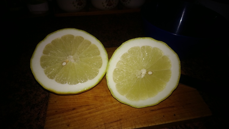 Все предыдущие годы плоды были стандартной величины, достаточно кислые и достаточно горчила кожа, походив на лайм. В этот раз вкус гораздо приятнее, лимон обладает приятной кислинкой. Но кожица также имеет горчинку, только менее выраженную
