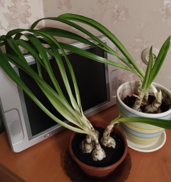 Полезные советыСама не знаю кто он) Сразу оговорюсь, цветами начала увлекаться совсем недавно. Поэтому, я ни разу не садовод. Забрала два горшка от деда. У него они были в запущенном состоянии, но как ни странно, росли и давали цветок. Оба покосились в одну сторону и держались на верёвочке. Один горшок я разобрала и рассадила. Крупных луковиц оказалось 9 штук, просто неимоверное колличество деток и очень много маленьких росточков, я их скрипя сердцем выбросила))) Крупные рассадила как смогла. Посмотрите, пожалуйста, нормально так? На сколько им будет комфортно в таком виде жить?