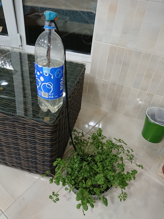 А вообще есть специальные автополивы, если горшок один, то я б не заморачивалась и купила. Только проверьте заранее как работает и насколько хватает воды.