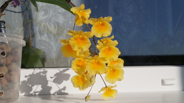 Фалики обычно круглый год могут цвести, морковка у меня зимой цвела, дендр желтый весной, дендр розовый зимний.