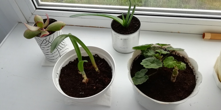 В дом въехали с началом самоизоляции, поэтому вместо горшков использовала подручные средства 😅