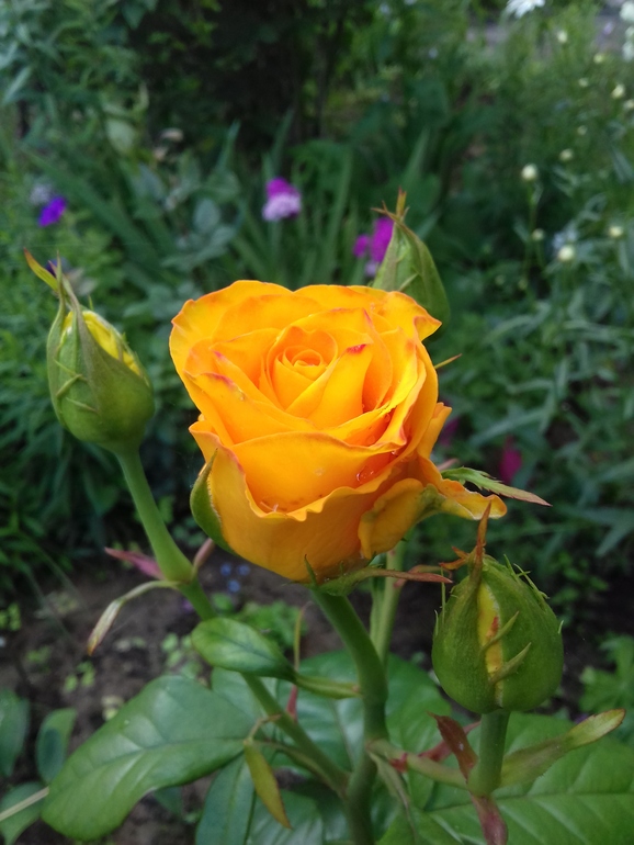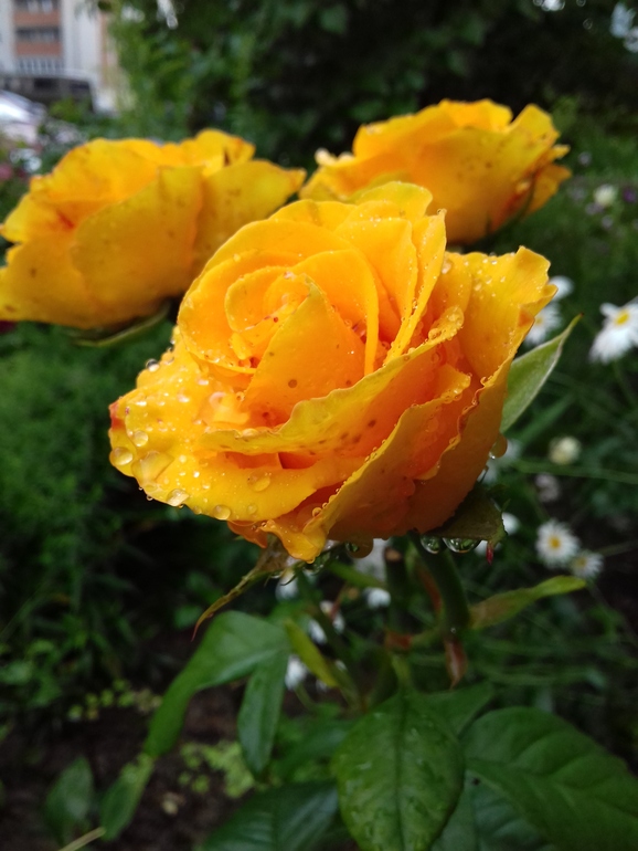 В цветнике не все гладко, зарядили дожди(( Но проснулась солнечная Керио, фото реальное - без обработки, цвет потрясающий!