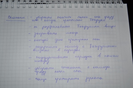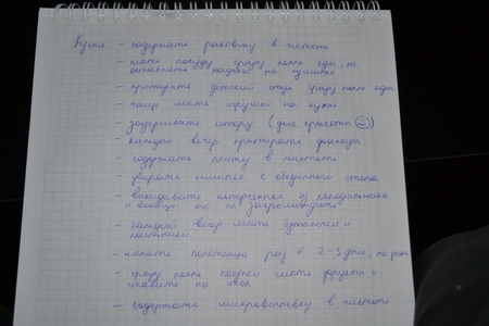 и наконец, напоминалки. я их сделала оооооочень подробно, все что вспомнила - все записала, на каждую комнату отдельно, что надо сделать. короче до фига написано :))) половина думаю непонятно, так как разучилась писать рукой (последний раз стлько писала ручкой наверное в универе еще, 2 года назад).