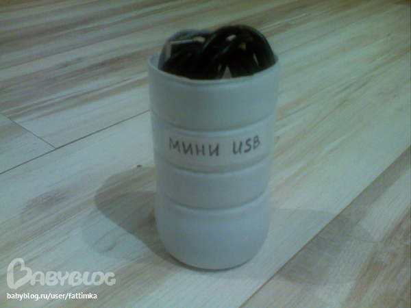 я тоже думала собирать рулоны, но потом придумала вырезать горлышко у питьевых йогуртов и использовать оставшийся стаканчик! Быстрее соберется, чем рулоны от туалетной бумаги, качественне и можно протереть (пластик все-таки) и есть дно, провода не будут проваливаться! А еще приклеела на скотч наименование содержимого. Вот как получилось: