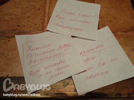 Чувствую, в ближайшее время дом обрастет листиками с заметками. Уже висят над мойкой, на зеркале в спальне, в ванной. Стимулирую себя фразами: будь красивой - ты же мама дочки!