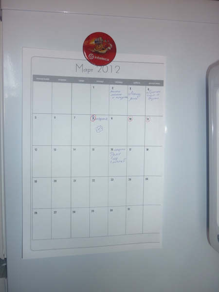 А еще я сегодня распечатала и повесила сем.календарь) воть
