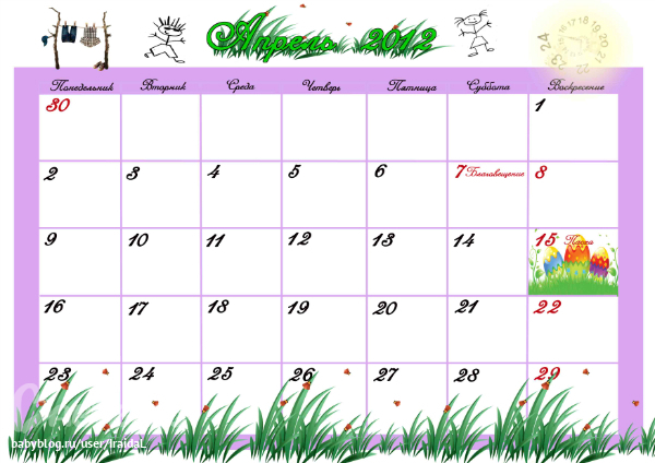 Отчитываемся по заданиямЯ сделала-таки календарь на апрель, фотошоп рулит))))) его можно теперь на любой месяц переделывать и цвета менять, и картинки и прочее:)