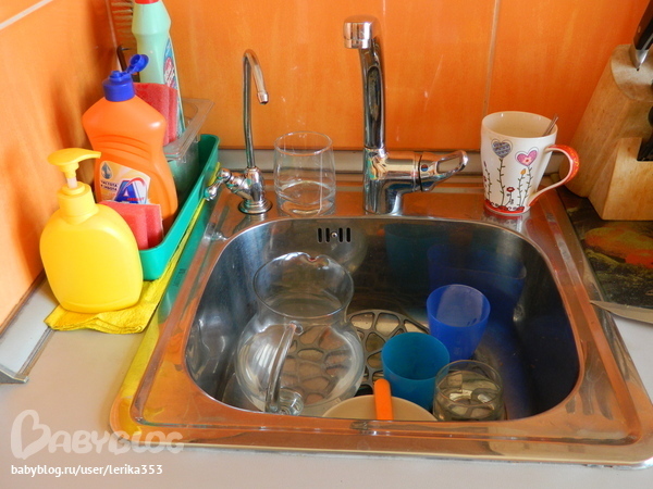 И сразу хочу извинится за возможные задержки отчетов (но я буду очень стараться писать во время), и за то, что все таки немножко буду переделывать систему под себя.... Например, раковина. Чищу ее регулярно, НО вытирать.... Во-первых, никто кроме меня (т.е. муж и мама) не понимает, зачем ее каждый раз вытирать. А во-вторых, меня жутко бесит это делать!!!!!!!! Я лучше все вокруг помою, чем буду после каждой сполоснутой чашки/ложки ее вытирать.