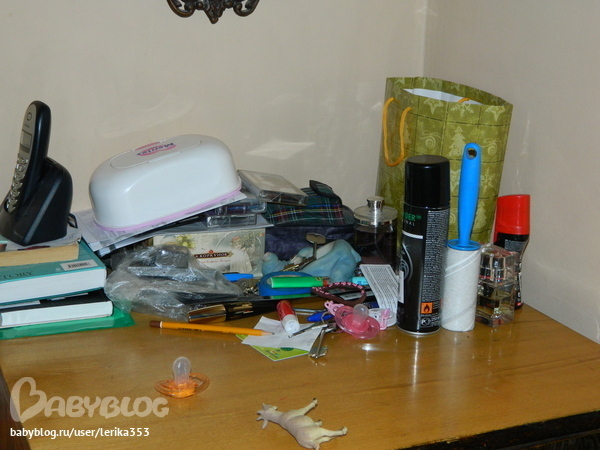На нем еще и снизу всегда что-нибудь валяется, но на момент задания там лежали вещи, которые надо было отдать, поэтому фоткать не стала.