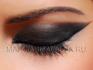 Тонкая стрелка у внутреннего угла глаза и у внешнего, а по центру – утолщение. Возможен и такой вариант: стрелки в уголках глаза не рисуются вообще, а рисуются посередине века. Если используются тени или карандаш (жидкой подводкой на нижнем веке лучше не рисовать), то эффект можно продублировать на нижнем веке.