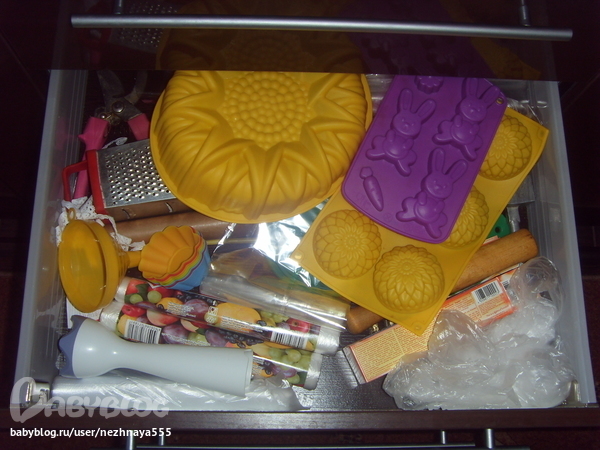 Во втором ящике много места свободного появилось, даже не ожидала.... Думаю не долго будет такой порядок, уж очень доча любит поковыряться в этих ящичках пока мама готовит кушать)))))))) Ну ничего...... у меня ведь теперь есть каждый день по 15 минут!