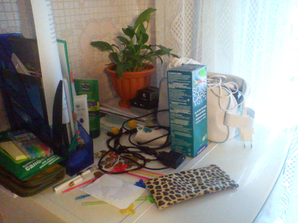 Единственная заковыка - куда мелочь складывать? Надо ей придумать красивую и полезную тару (фен-шуй мне в помощь), и всяческие провода - от телефона, эл.книжки, зарядки. Как и куда их складывать, чтобы и под рукой и не бардак??!!!