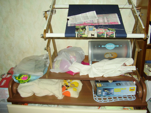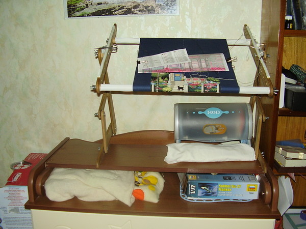Агрегат на окошке пароварка, готовлю несколько раз в месяц. И конструкция, диванный станок для вышивания.