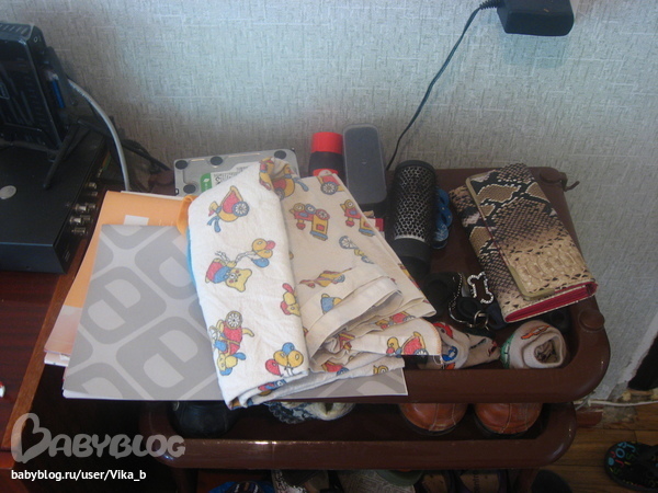 Это то место, куда сваливается все белье после сушки - детский шезлонг. которым мы уже 100 лет не пользуемся