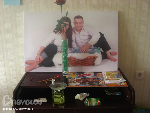 Картину недавно забрали из багетной мастерской, поэтому ее еще не успели повесить и для коллажа все никак рамку не куплю. поэтому пока лежит так