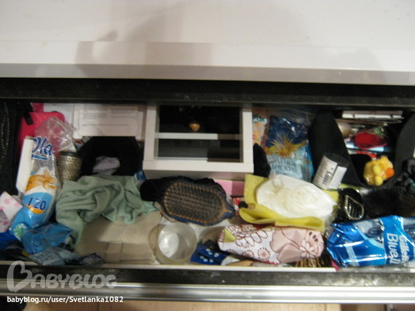 Отчитываемся по заданиямРасхламлять я сегодня решила второй ящик тумбочки под раковиной (вчера расхламила первый) , теперь тумбочка впорядке, а душа спокойна))) Жду недождусь, чтоб еще что-ниб. разобрать))) а тепрь фото))