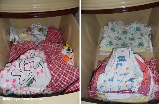 Ну что ж, аптечку показывать не буду, перебрала ее буквально около 2 недель назад, выкинула КУЧУ просроченных таблеток. С ящиком для носков тоже швах, тк и до уборки, и после - вид приблизительно одинаковый)) А поскольку оставалось еще время - я разбрала заодно трусики и маечки малой)) Вот ими и похвастаюсь.