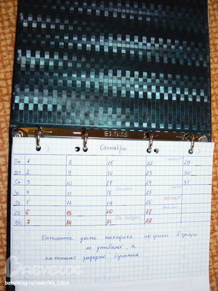 Семейный календарь вела во время первой беременности. Очень удобно было. Записывала все приемы гинеколога, встречи, походы на сдачу анализови т.д. А потом забросила, когда календарь кончился))) Но знаю как с ним удобно, поэтому вчера расчертила в своем КЖ оставшиеся месяцы, заодно и фразы добавила - вдохновляющие)))