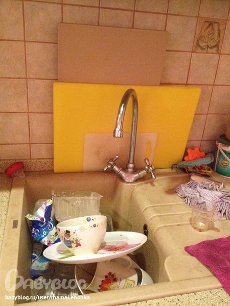 Ну и вот мой отчетик - моя раковинка:))) Сразу скажу, что я в доме хозяйка не одна... у меня готовит чаще муж и посуда тоже на нём. Мы её собираем в раковине, а он её в посудомойку складывает:) Вот я дождалась, он её освободил и я почистила.