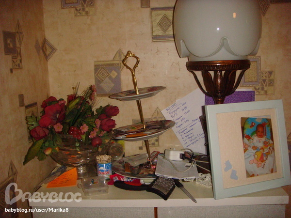 - на серванте (прошу не стыдить, и так стыдно! Места в однокомнатной квартире не очень много, а тут так хорошо, за дверкой, в глаза не бросается))) то зарядку уберем, то листочек какой-ниудь, чтобы перед глазами не мелькал. Ну, вобщем тут и так всё видно ). Скажу честно "И тут Остапа понесло"!!! Перфекционизм во всём его проявлении!! Покосившуюся подставку я вообще выбросила, всё, что было на ней лишнего разложила по местам, вазу тоже убрала (она ещё от бабушки мужа оставалась). На все лишние листочки время тратить не стала, значит, всёже где-то внутри понимала, что меня несёт)) убрала их в папку, разберу их в следующие 2 минуты. Подобрала симпотичную коробочку от какого-то подарка и сложила туда всё то, чем пользуюсь ежедневно. Ну, и оставила "Книгу учёта семейных финансов" и черновой КЖ, позже и кулинарную книгу.