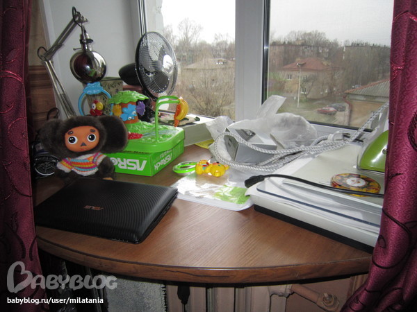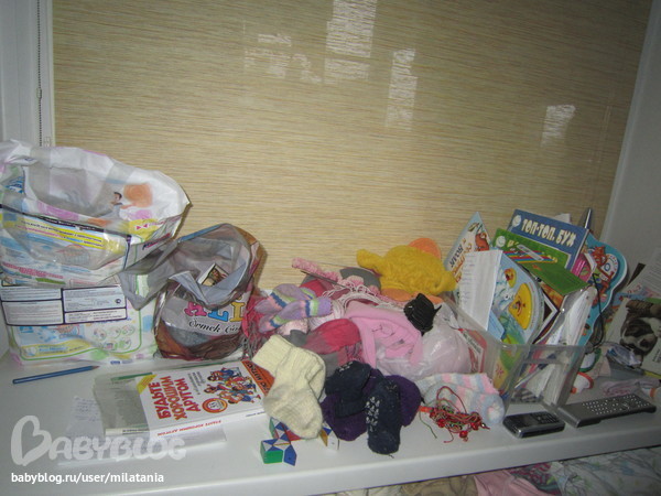 Полочки под ТВ,подоконник в спальне.кошмар на комоде,у микроволновки,на кресле,стол у сына,комп стол,спинка дет кроватки,полочка над батареей в кухне.