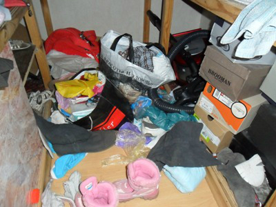 Выгребла все в коридор. что бы можно было хотя бы зайти