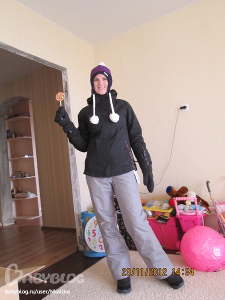 А это мое фото, купила зимнее обмундирование по списку спасибо Юле и Декатлону!)правда хотела поярче, но не получилось, самое яркое - носки но их не видно (они красные)