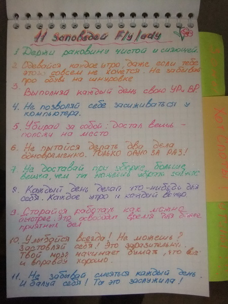 В большей степени выполняю, только с 3-мя проблемы: 5. Убирай за собой: достал вещь – положи на место. (дурная привычка всё оставлять на потом) 6. Не пытайся делать два дела одновременно. ТОЛЬКО ОДНО ЗА РАЗ! (работаю над этим) 7. Не доставай при убоорке больше вещей, чем ты можешь убрать за 1 час. (учусь контролировать время)
