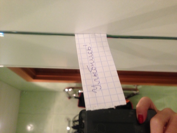 Лозунги помыть посуду и раковину вешать не стала - муж бы принял на свой счет! Поэтому сделала себе две такие маленькие напоминалочки в ванной и на холодильнике: