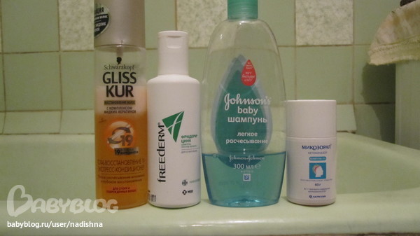 Отчитываемся по заданиямДоброе утро красавицы. Расскажу свою историю о волосах. После родов у меня полезли волосы, я думаю как и у большинства. Еще у меня была проблема, на голове вскакивали фурункулы (когда-то очень сильно простыла), я пошла к дерматологу с проблемой, а она смотрит мою голову и говорит, у тебя есть проблема еще и с выпадением волос, а еще ты пыталась ее исправить с помощью масла репейнова, я говорю ну да, она, у тебя кожа чувствительная и маслом ты закупорила поры и теперь кожа покрывается угрями и если выпадают волос, то нельзя их лечить масками, а только витаминами. Вобщем фурункулы она вылечила, раз в месяц я хожу к ней чтобы следить за угрями, пропила курс витаминов и чтобы вылечить кожу головы мою соответствующими шампунями. После курса витаминов волосы стали лезть меньше, после мытья головы провожу рукой по волосам и в ней остается волосинок 5 и при расчесывании вообще не остается, а раньше оставался целый пучок, от которого я была готова упасть в обморок. Ах да, еще она запретила мыть голову взрослыми шампунями и кондиционерами, и делать маски, чтобы на кожу головы не было воздействия множества хим веществ. Голову я мою каждый день, чередуя шампуни, т к кондиционером пользоваться нельзя мне на помощь пришел глис кур экспресс-кондиционер, после мытья я им пшикаю на волосы и они прекрасно расчесываютя, а потом становятся мягкими и вкусно пахнут.