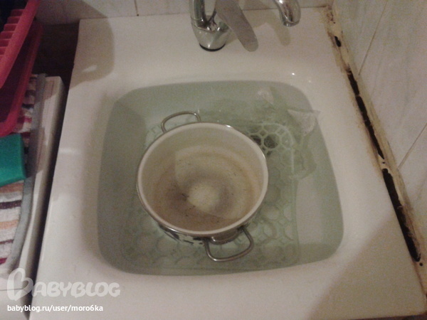 Отчитываемся по заданиямУтро восьмого дня я начала с доведения до блеска себя любимой и кухонной раковины в тандеме с кастрюлей =). Замочила их в "белизне" на пол часа.