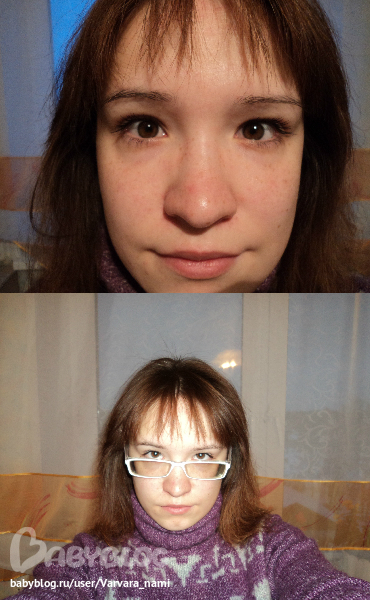 Итог))) мои фото...так сказать ДО и ПОСЛЕ...первое с утра...куда то собиралась...максимум там тушь на глазах...и вторые...их много-после, сегодняшнее утро, использовала тушь, тени, карандашь для глаз, помада, пудра, карандашь для губ и карандашь для ресничек...