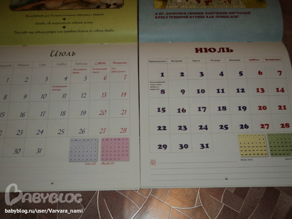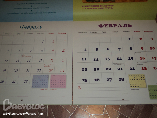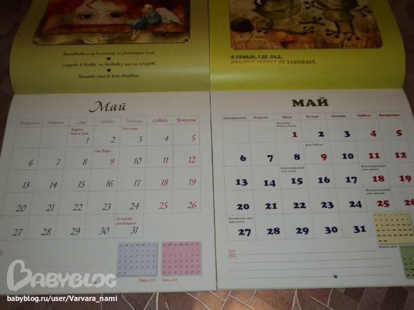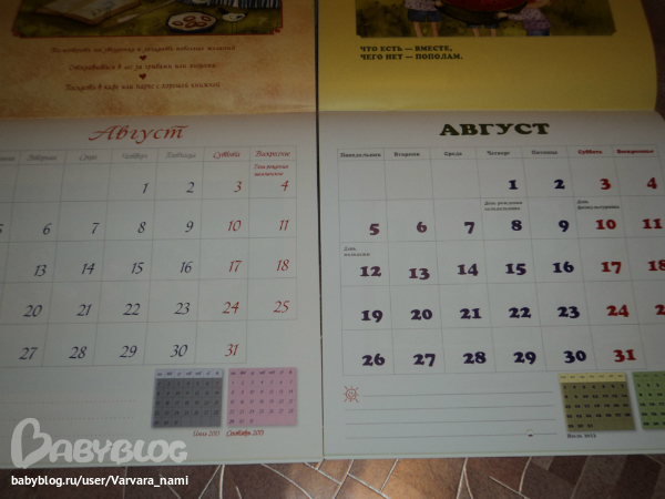 отмеченны праздники, причем два разных календаря-и разные праздники в них)) и местечко есть))