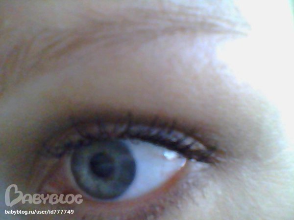 - это моя тема. Не могу ограничиться тушью, поэтому у меня обычно огромное количество теней. Ими я пользоваться умею и люблю. А вот с бровями у меня противоположная нашей ведущей картинка, я раньше пользовалась карандашом или тенями, а теперь крашу краской - так удобнее когда времени нет совсем! Последнее время мой дневной макияж глаз на скорую руку выглядит так (sorry за качество фото)