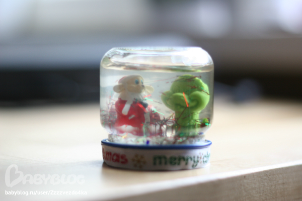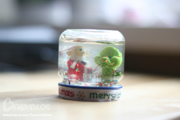 И день последний - баночка с волшебным снегом. Изначально не хотела ее делать, но старшая дочь уж больно интересоваться имми в магазе начала, решила сделать))) Времени она заняла уйму, т.к. постоянно текла, даже с проклейкой шва, последний вариант вроде не текучий. Там заяц в роли ДМ и змейка