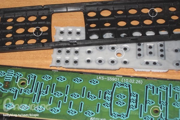 Потом приклеиваем наши квадратики на кнопки пульта (которые плохо работают) с внутренней стороны. Все дальше пульт скручиваем и наслаждаемся его работой ))).