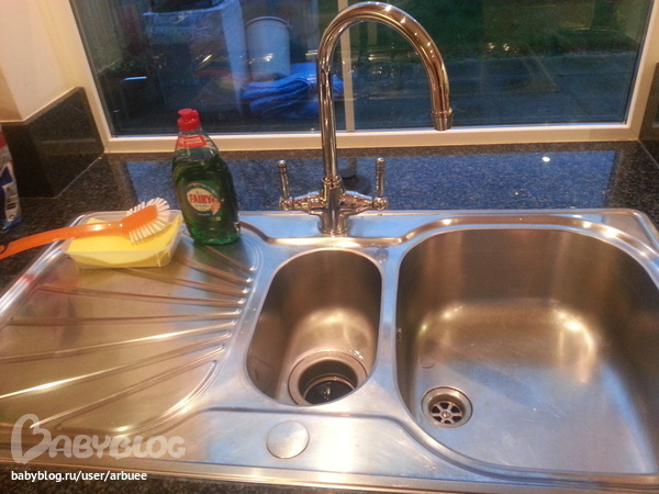 так как взрослые дети что кушают готовят и бороться с этим практически не возможно вообщем у меня не получается "надраить один раз и поддерживать")) вообщем превращается раковина вот в такую красоту