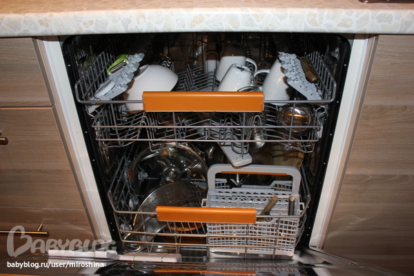 Пока разогревается завтрак, разбираю посудомойку.
