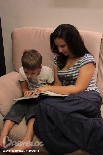 Время чтения с сыном. Сначала обычно он читает букварь, а потом я ему сказку.