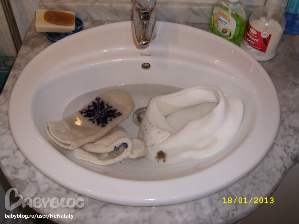 А еще у нас тут стирка по ДР. Сегодня я стираю свои шапку и варежки вручную (уронила их в грязь в поликлинике).