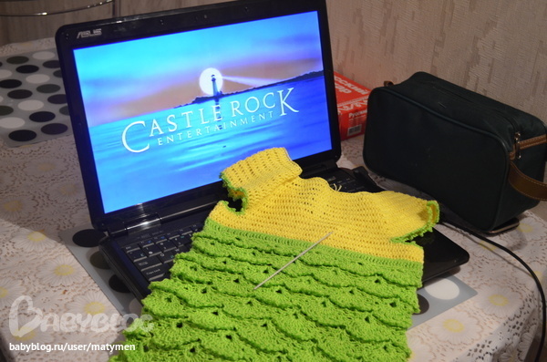 Спать мне совершенно не хочется, я люблю посидеть до 1 ночи на кухне - смотрю фильмец какой-нито и вяжу, сегодня в планах было закончить платье и начать шапочку под аккомпанемент Зеленой Мили...