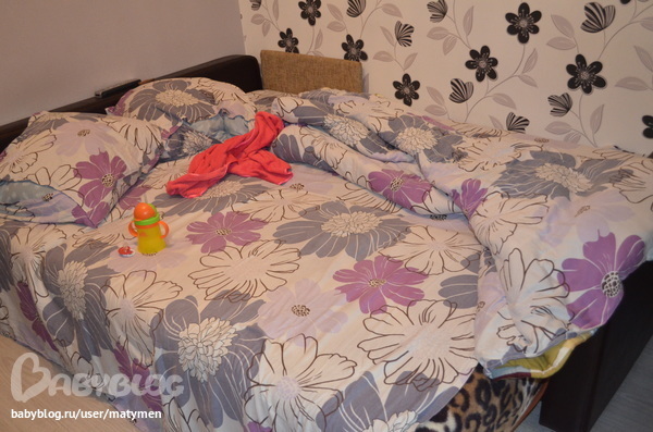 Заправляю дочкину кровать.