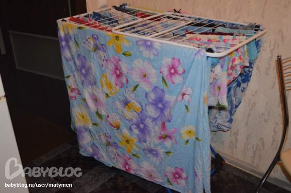 Я развесила постиравшееся белье.