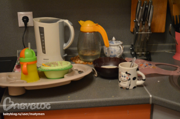 Пока детеныш самостоятельно утоляет голод, я делаю завтрак себе.